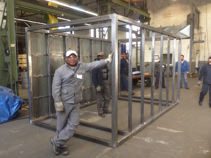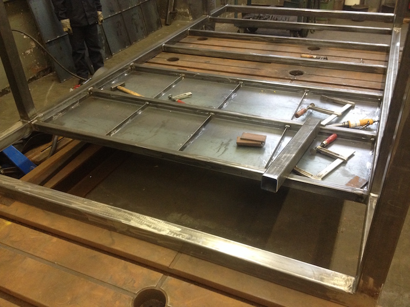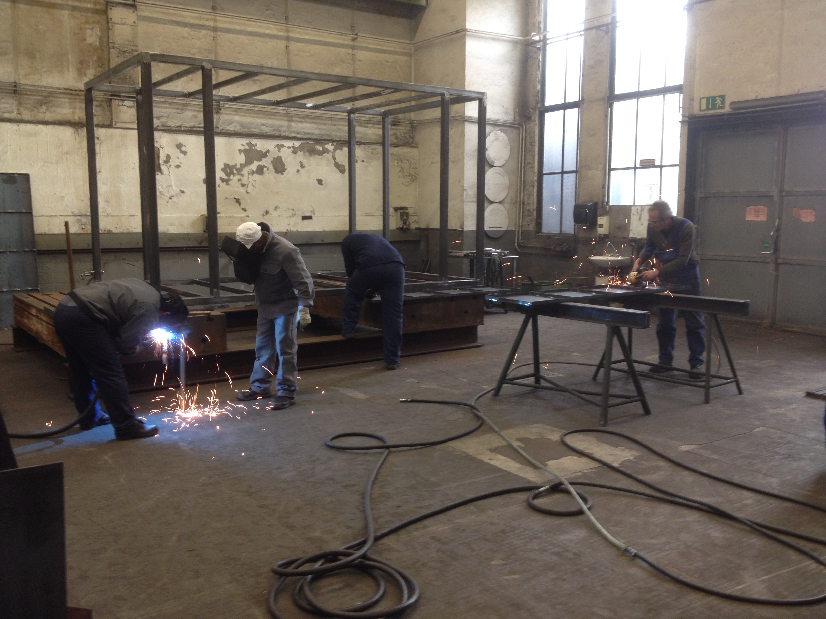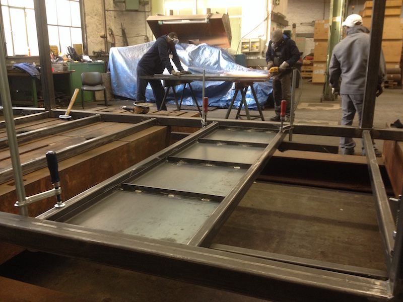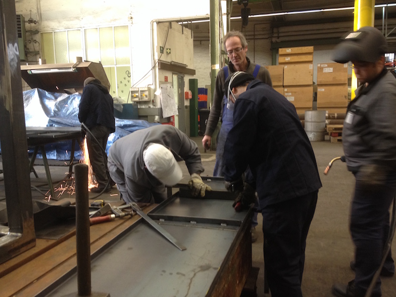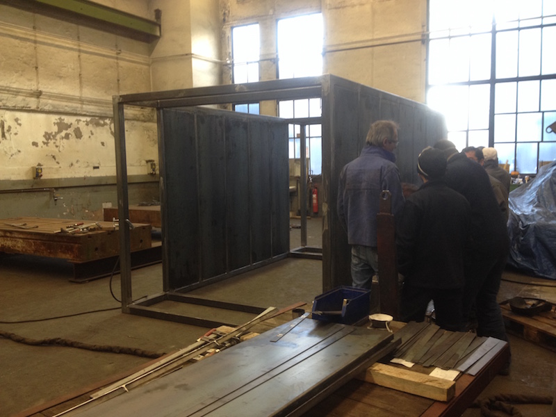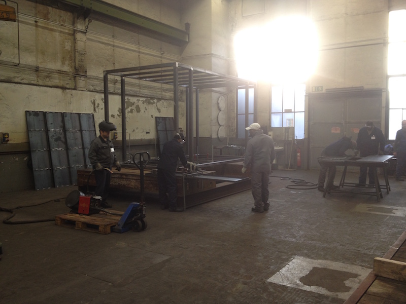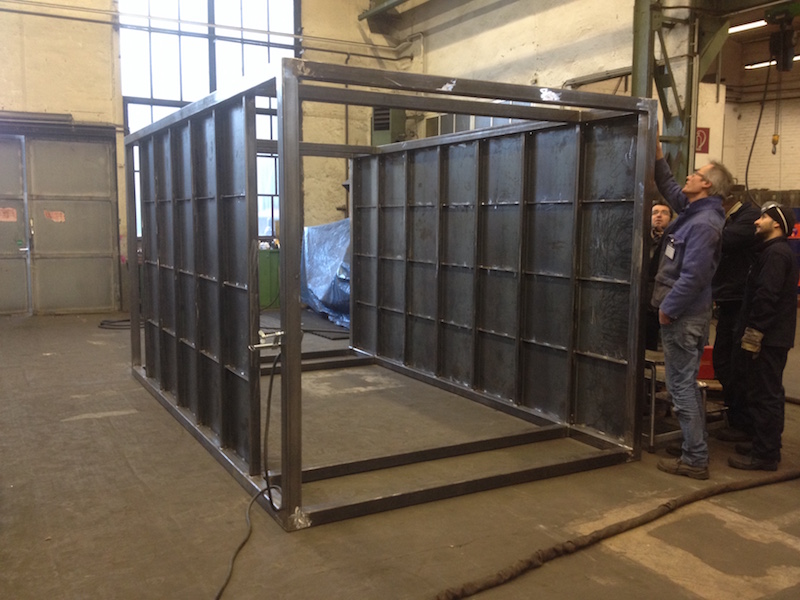 At the end of week one we ultimately finalized the frame. Next we produced panels for roof and floor in three steps: cutting, tilting and, for stiffness matters, welding in support beams.