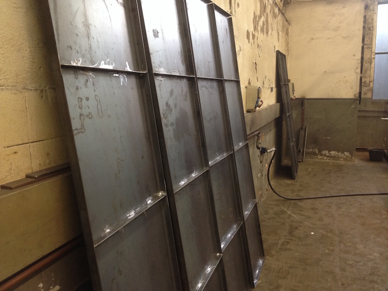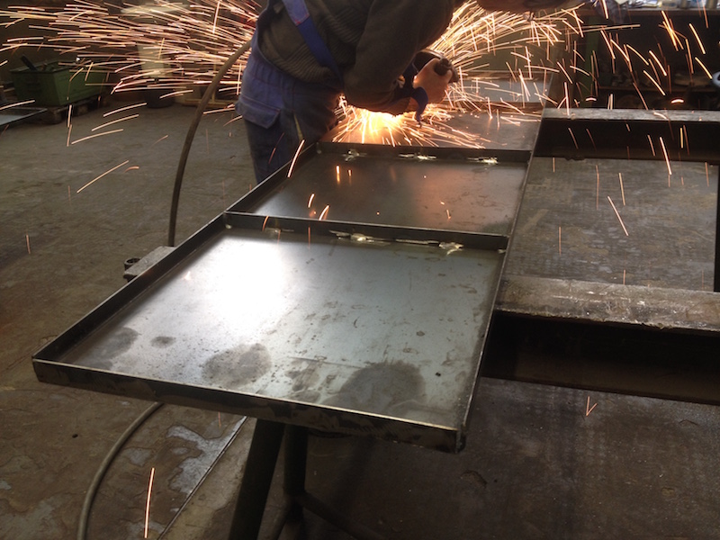 Zu Beginn der ersten Woche des Jahres haben wir den Rahmen endgültig fertiggestellt. Als nächstes wurden die Paneele für Boden und Dach in drei Schritten hergestellt: Zuschneiden, Abkanten und, für die Steifigkeit, Stege einschweissen.