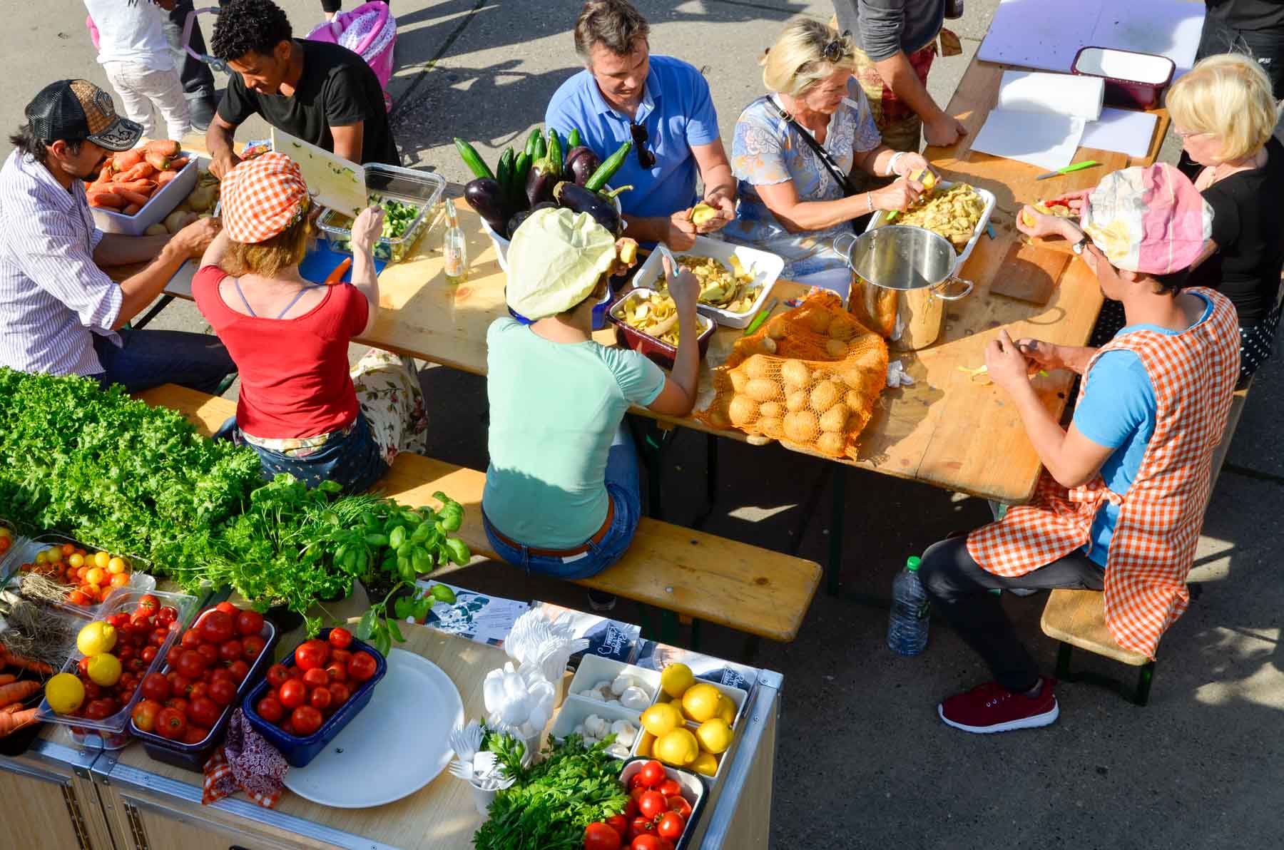 Everybody was invited to share her/his own culinary knowledge and to cook with us. All those fresh vegetables from the fields of Bonnekamphöhe were waiting for the pan! Lots of people came and joined us for an enjoyable evening of culinary discoveries and taking part in the cooking together event.