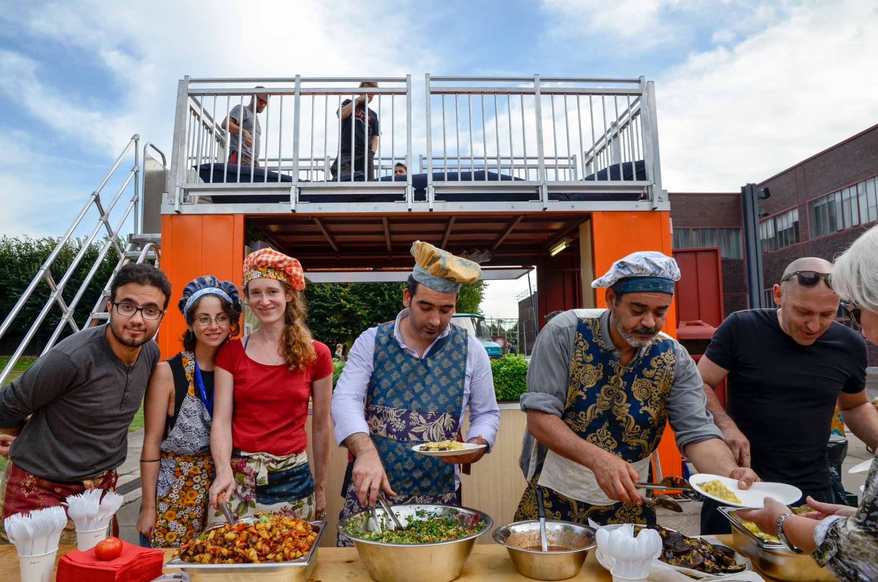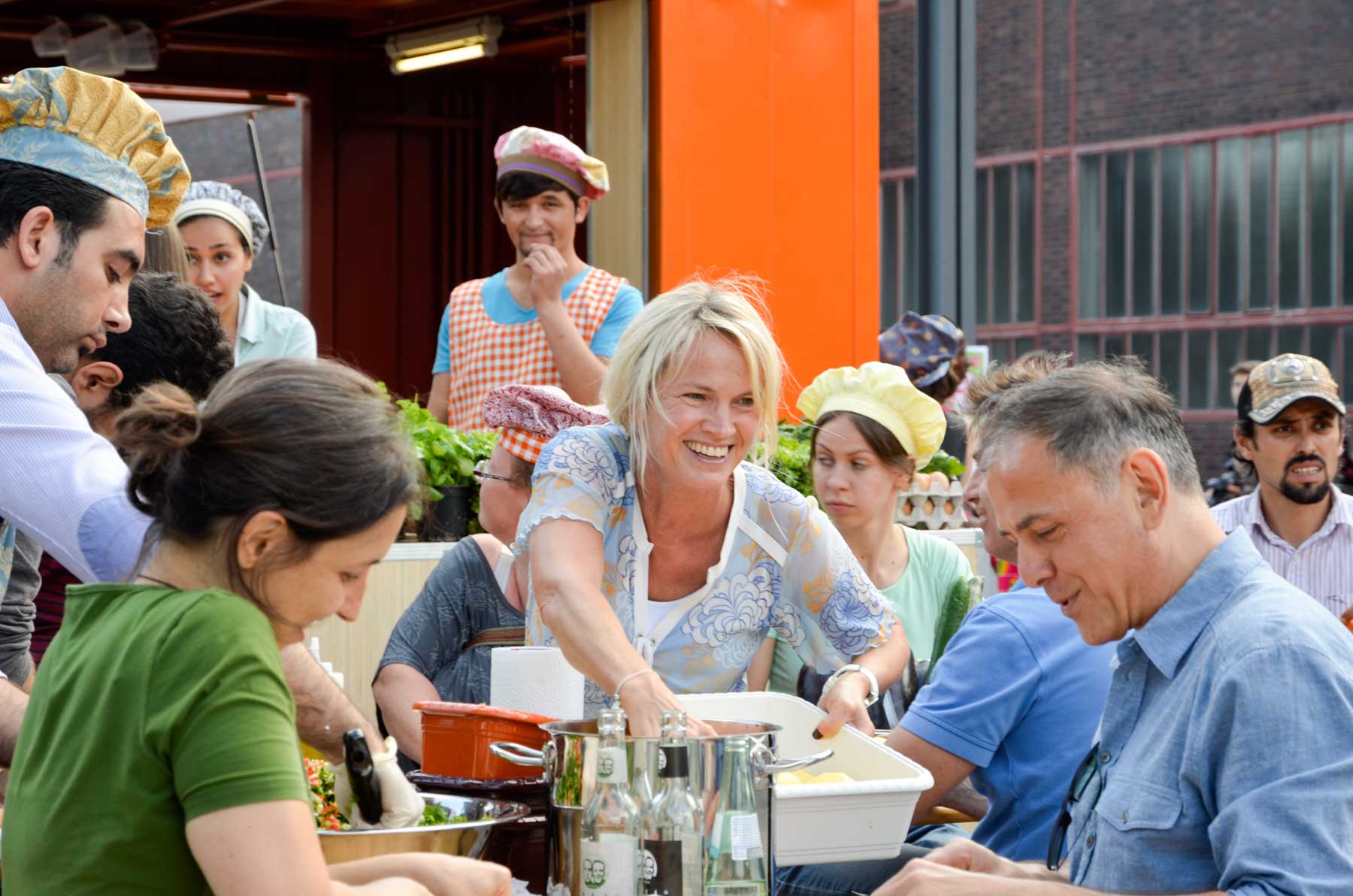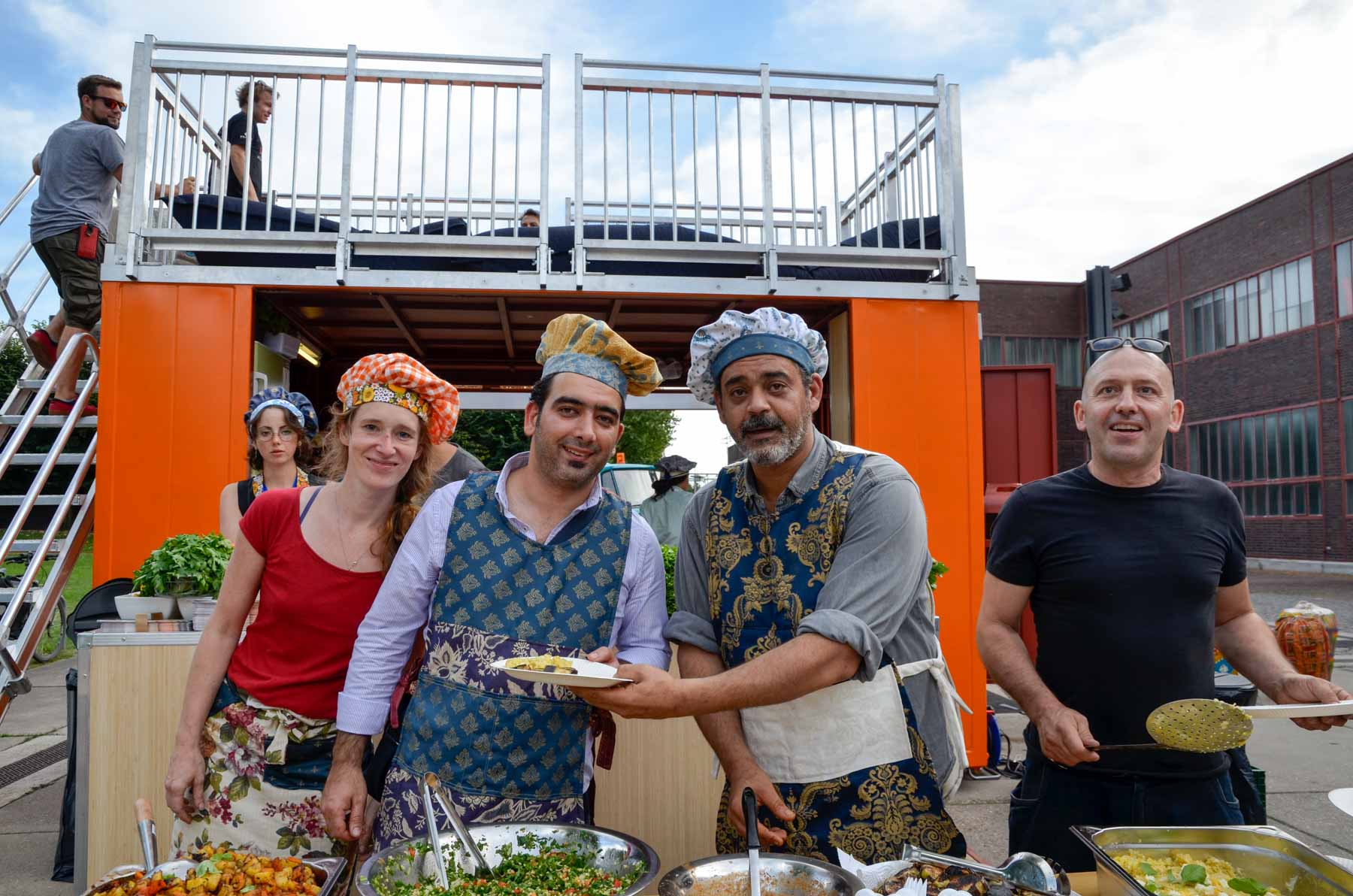 13.09.16Es ist endlich so weit: Die Refugees' Kitchen geht an den Start - die ernsthafte Testphase beginnt! Und zwar bei Zollverein mittendrin im Rahmen von Katernberg blitzt auf.