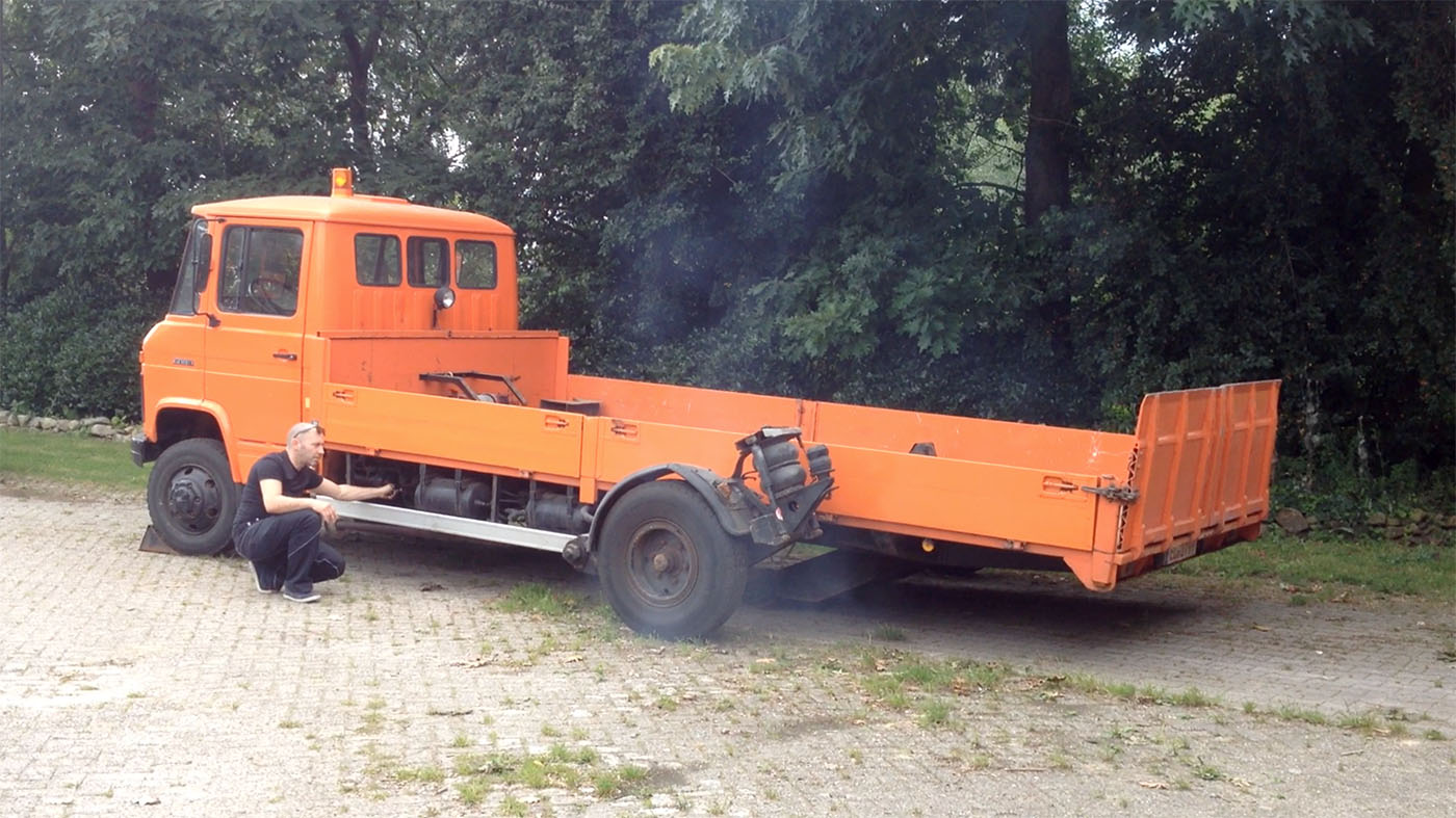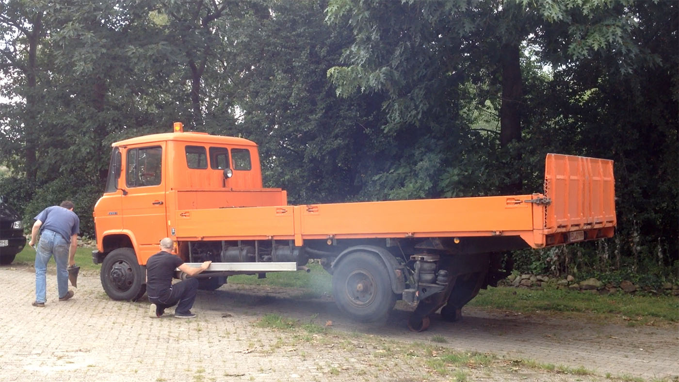 Das perfekte Fahrzeug! Ein kleiner, antiker, 7,5-Tonner. Mit einer sehr besonderen Fähigkeit: er macht Sitz!