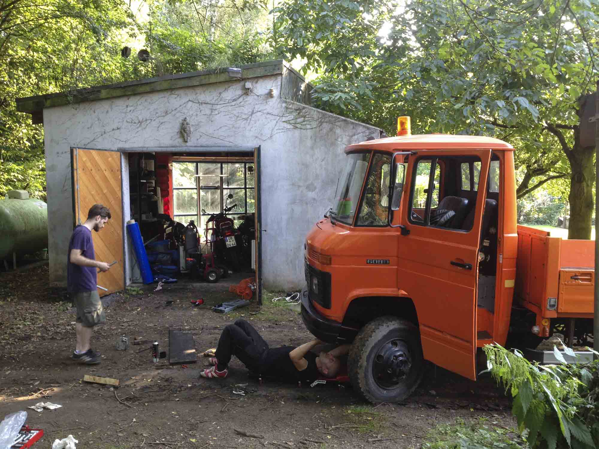 The truck is bought and now, after several improvements we finally got the TÜV (= technical vehicle inspection)! Although: the vehicle registration turned out to be more difficult than expected. Since our car is an oldtimer (older than 30 years), there are specific regulations, which differs from 'normal' cars. We had to repair different things, by our own in the nice workshop by our friend Sebastian and with the help of Mehmet, a mechanic, who used to work in the steel factory of Oberhausen - Gute Hoffnungs Hütte (= good hope steel mill) - until it was closed in the 1980ies. Until now he's the only one who already knew the special features of our car - cars like ours were used in factories.