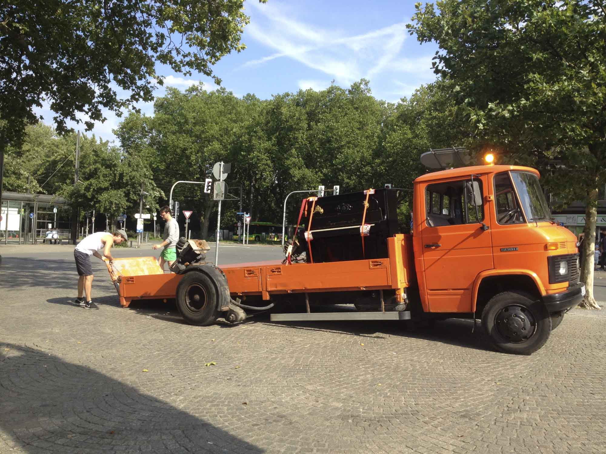 Den TÜV haben wir schlussendlich bekommen und eine Zulassung als historisches Fahrzeug - ein H-Kennzeichen! Damit können wir jetzt in die Umweltzonen hinein; ein kleiner Arbeitseinsatz ist bereits erfolgreich absolviert - ein Klaviertransport von der Gdanska Kantyna aus Duisburg nach Oberhausen mit dem Theaterkollektiv Subbotnik!