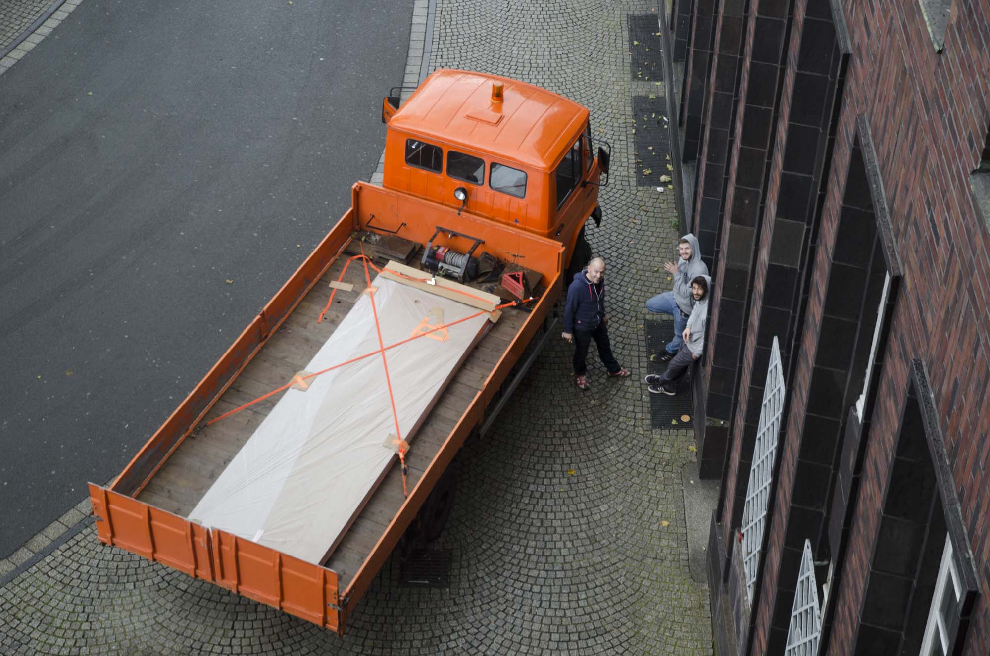 With a registration as an oldtimer we got an emission badge and we're allowed to enter the 'low emission zones' of city centres. So, the first mission is accomplished and the first "working trip" also: the transport of a piano from Duisburg to Oberhausen.